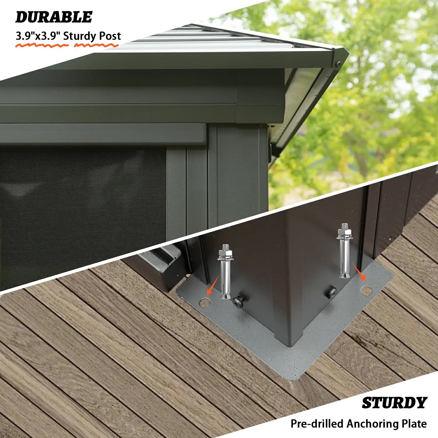 Experience the peace of mind that comes with sturdy anchoring plates and durable posts specifically designed to support Domi sunroom throughout the year. You can relax knowing your investment is built to last, providing a beautiful space where you can create cherished memories with family and friends.