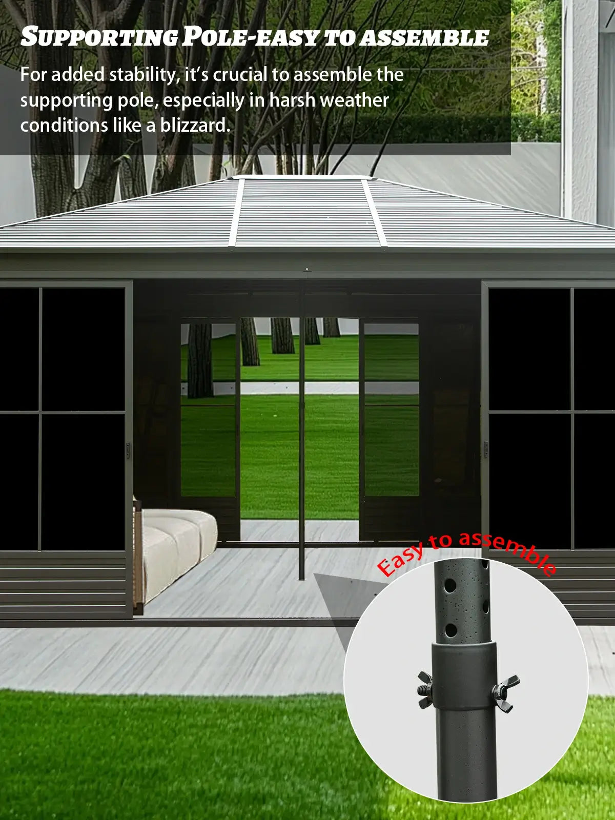 Strength and style come together in Domi sunroom, featuring sturdy support pole that provides extra durability during severe weather conditions. Whether you're hosting guests or enjoying some quiet time, Domi sunroom offers a reliable outdoor space that you can rely on to be safe and stable.