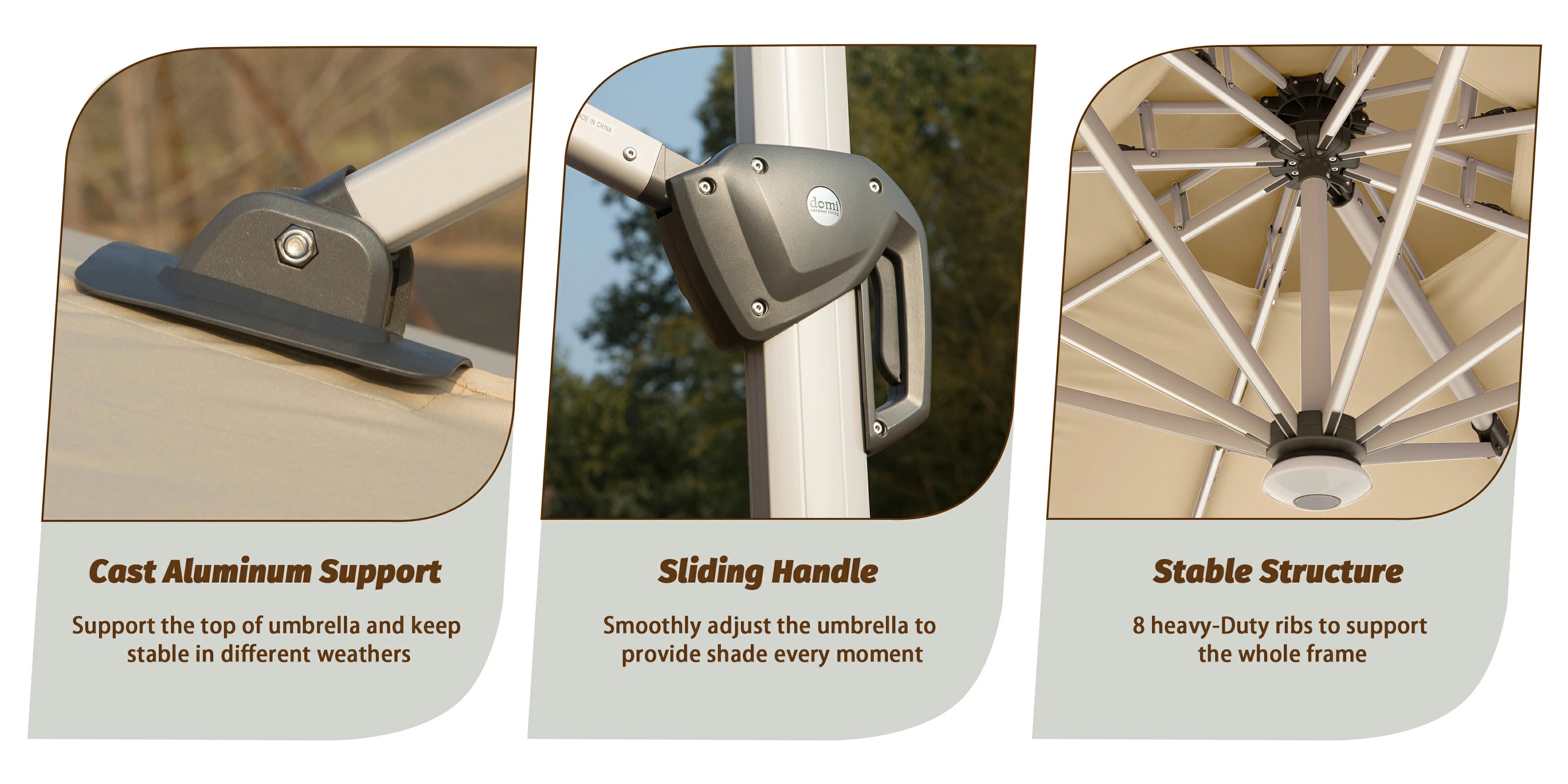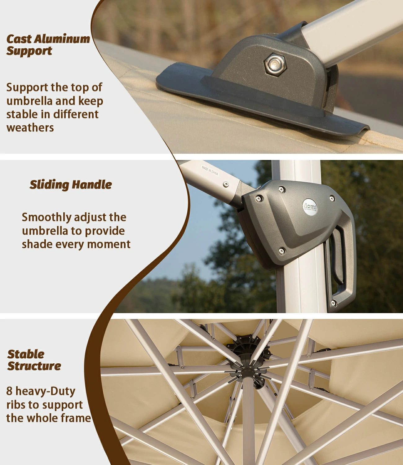 Domi Outdoor Living premium Cantilever Patio Umbrella, a must-have addition to your outdoor space. This large patio umbrella offers unparalleled shade coverage and functionality, making it the best patio umbrella choice for your home.