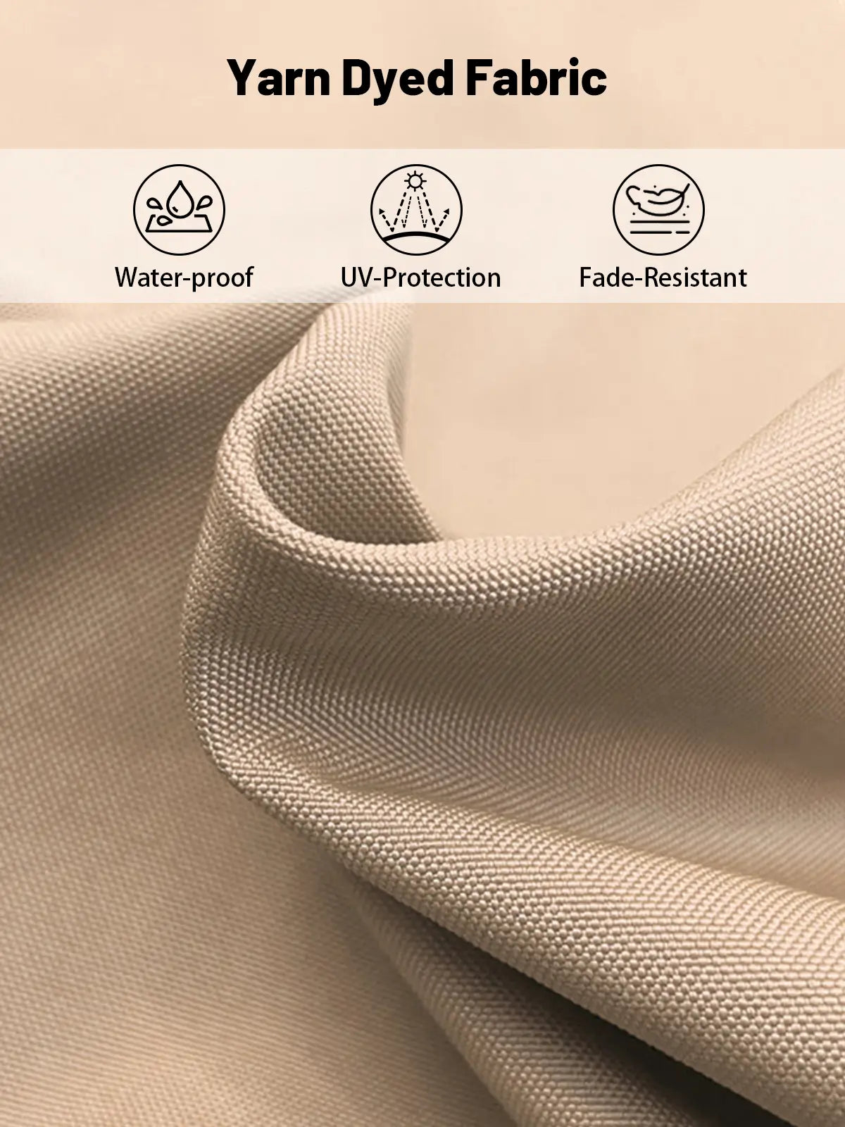 The canopy is made from 250gsm yarn-dyed fabric, a premium material known for its durability and resistance to fading. Enhanced with a PA coating, the canopy of this patio umbrella provides excellent UV protection, shielding you from harmful sun rays while retaining its vibrant color for up to 3 years. This makes it a long-lasting outdoor umbrella that you can rely on season after season.