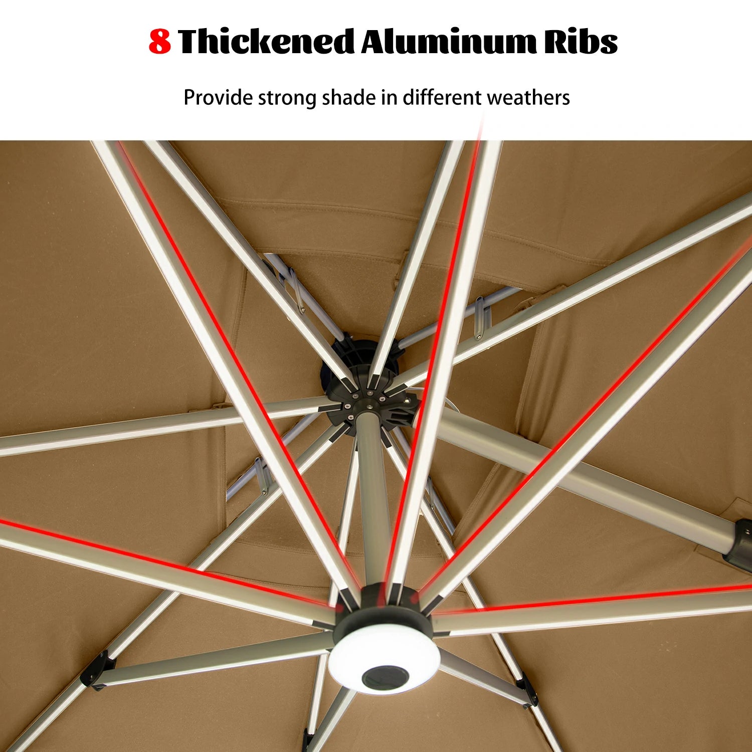 Crafted with aluminum support columns and aluminum umbrella ribs, this large patio umbrella is designed to withstand even the gustiest of winds. The addition of a triangular stabilizing structure at the top further reinforces the umbrella's stability, ensuring peace of mind for you even in challenging weather conditions.