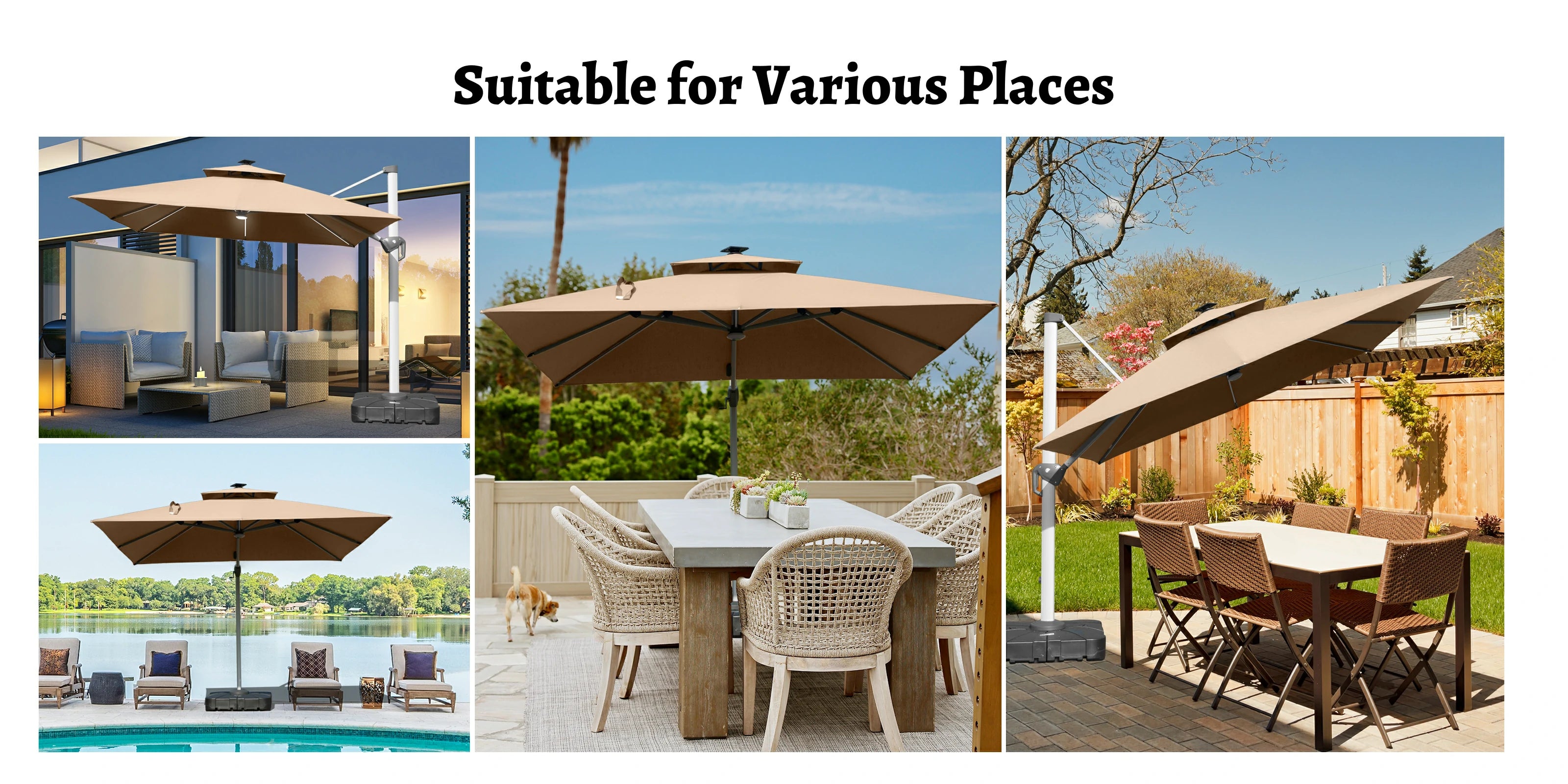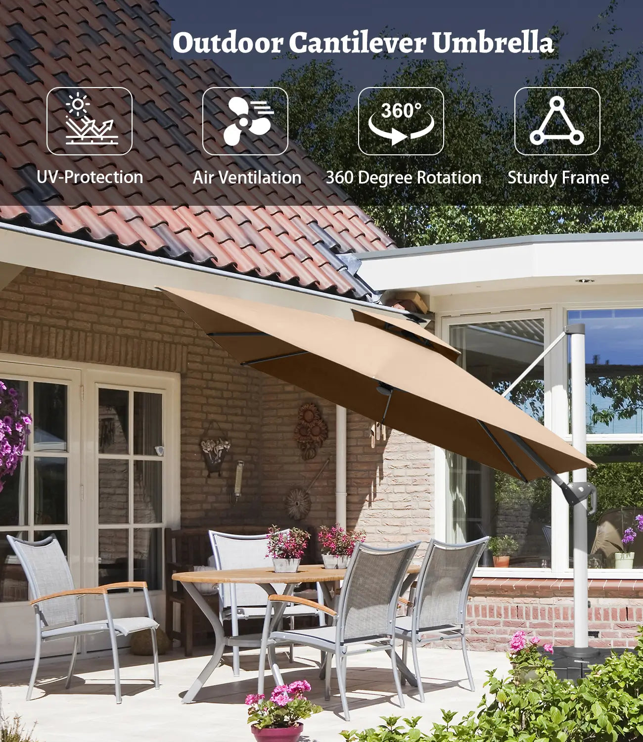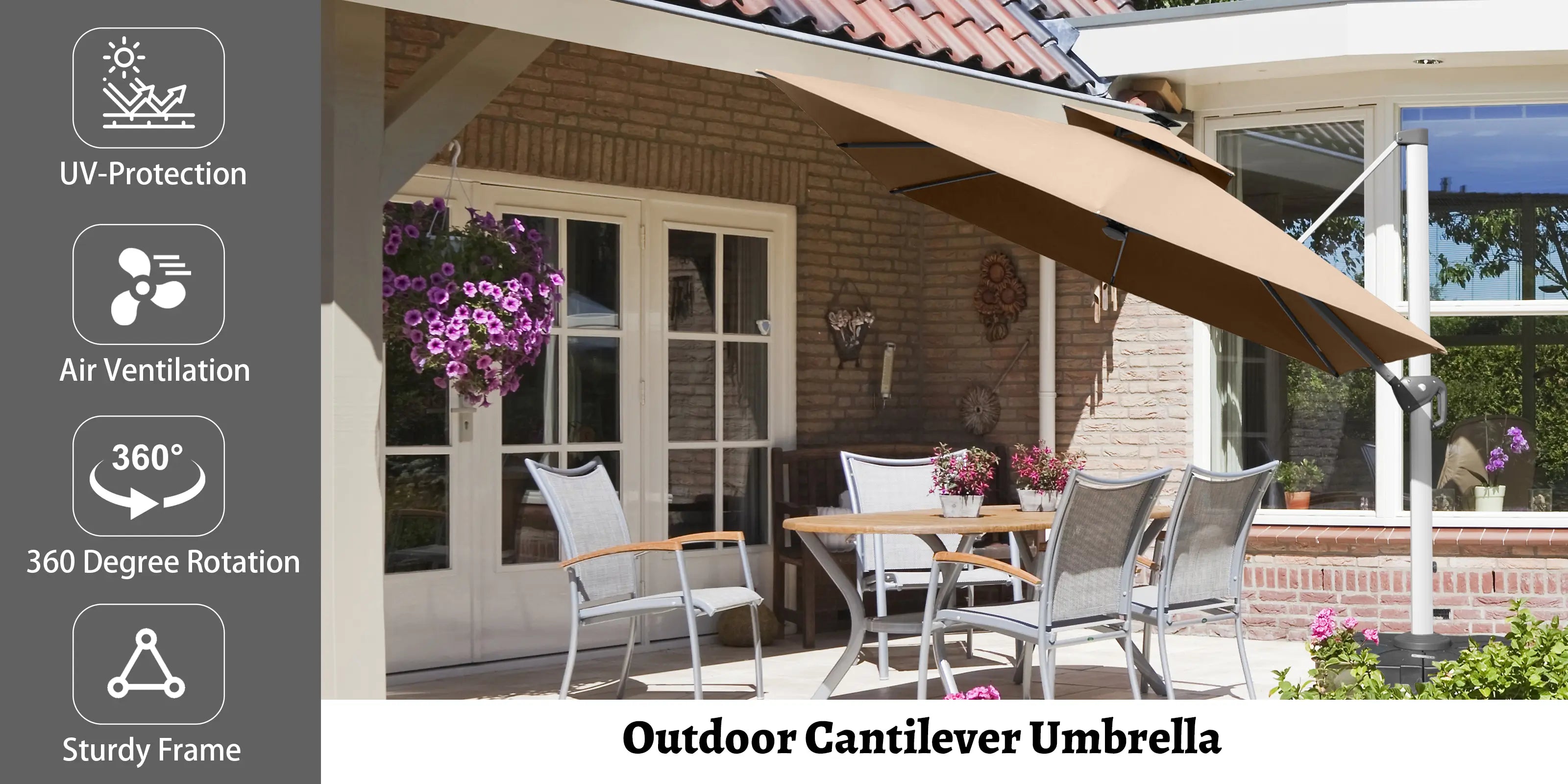 Experience unparalleled versatility with the Cantilever Patio Umbrella's ability to rotate a full 360 degrees. Adjust the umbrella to your desired angle effortlessly, providing optimal shade at any time of day.