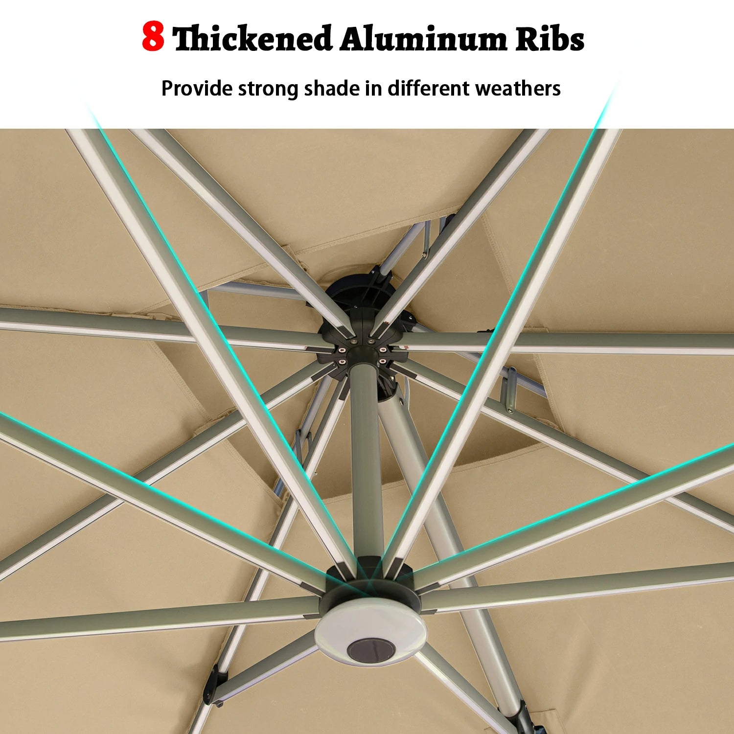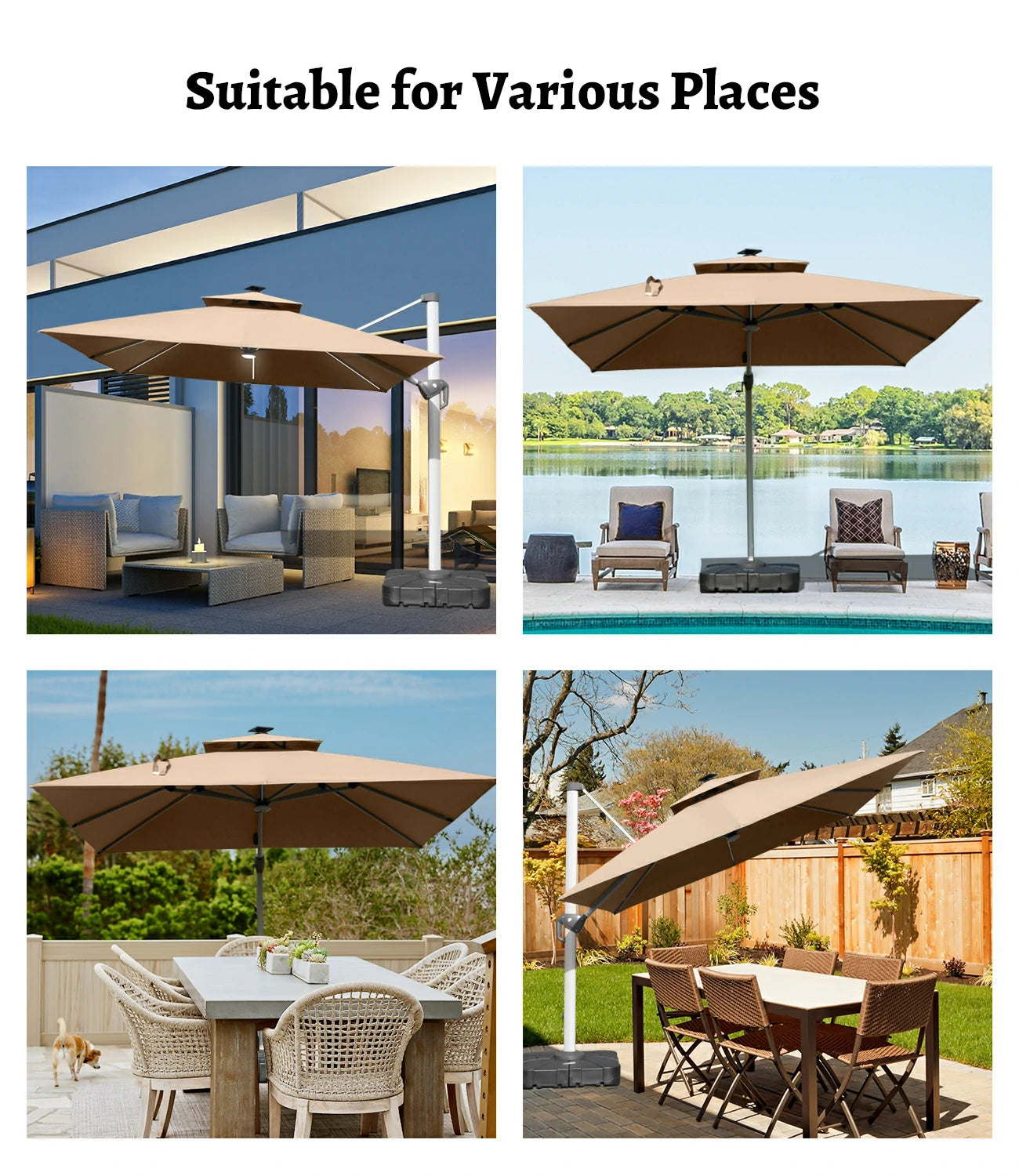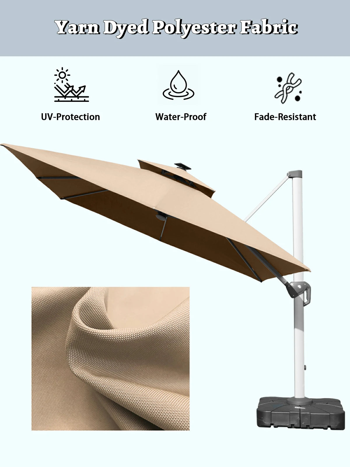 Domi Outdoor Living Cantilever Umbrella with Light. Engineered to exceed your outdoor shading expectations, this premium umbrella boasts various features tailored to meet your demands.