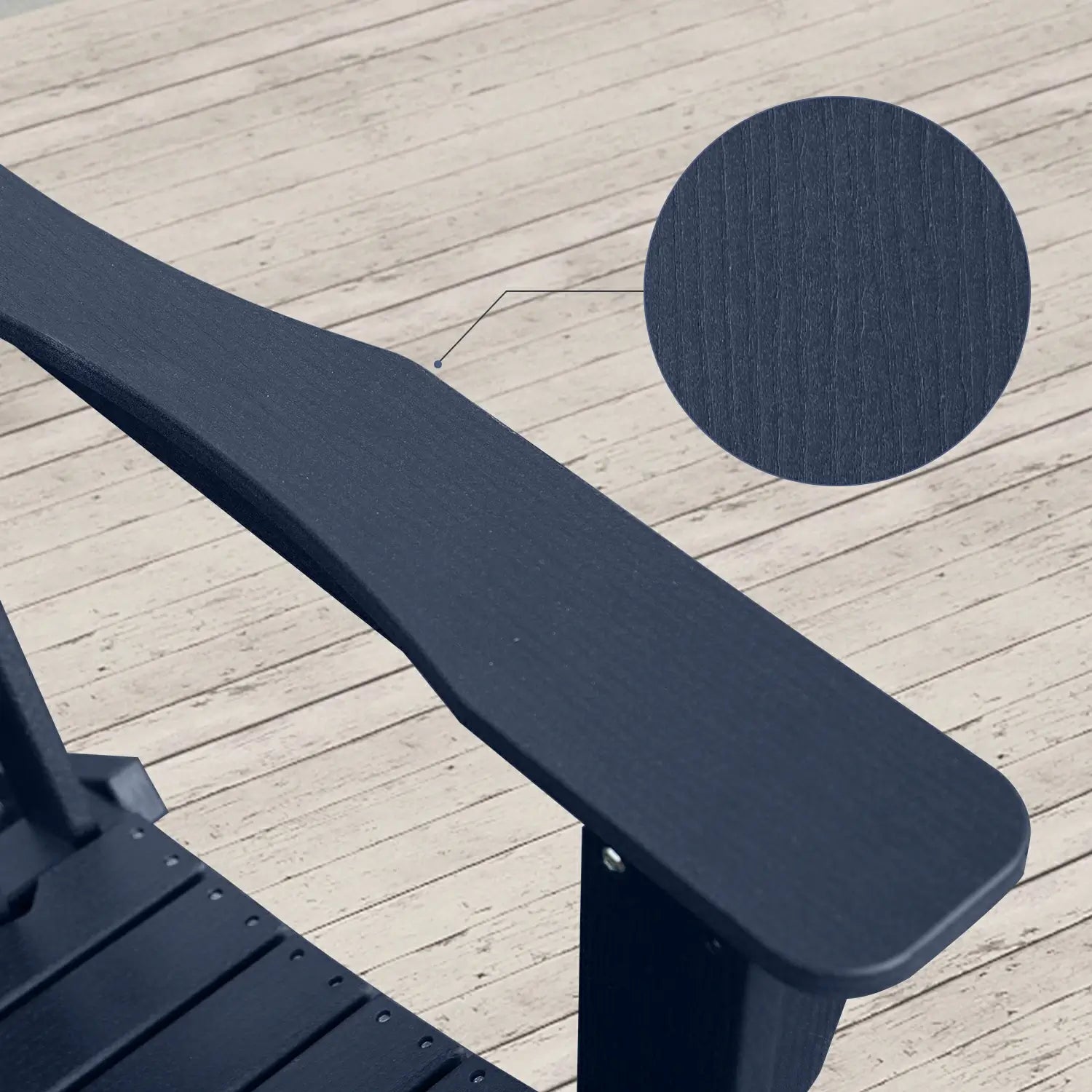Enjoy the classic aesthetic of Adirondack Chair from domioutdoorliving. It is meticulously crafted from premium HDPE, featuring a deep, realistic wood grain texture while offering the superior durability of HDPE. Engineered for all-weather performance, this chair incorporates advanced UV-inhibitors to prevent fading and remains resilient against rain, snow, and coastal salt spray. Its substantial weight prevents your chair from being easily blown over during windy and rainy weather.