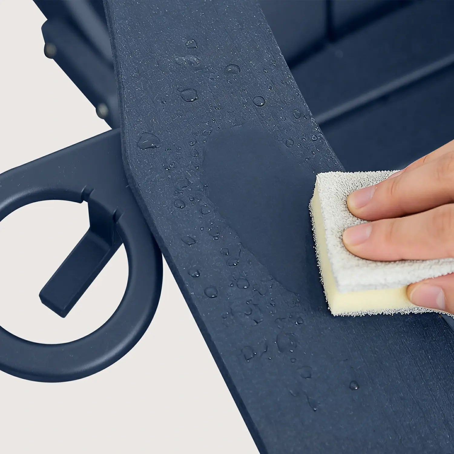 Crafted from premium HDPE material, Domi's Adirondack Chair only requires a quick wipe with mild soap and a soft cloth or brush to remove most outdoor dirt and spills. By avoiding harsh, abrasive cleaners and other corrosive chemicals, you can easily preserve the realistic wood texture for years. This waterproof and low-maintenance design ensures your Adirondack Chair stays looking brand new on your patio, deck, or poolside with minimal effort.