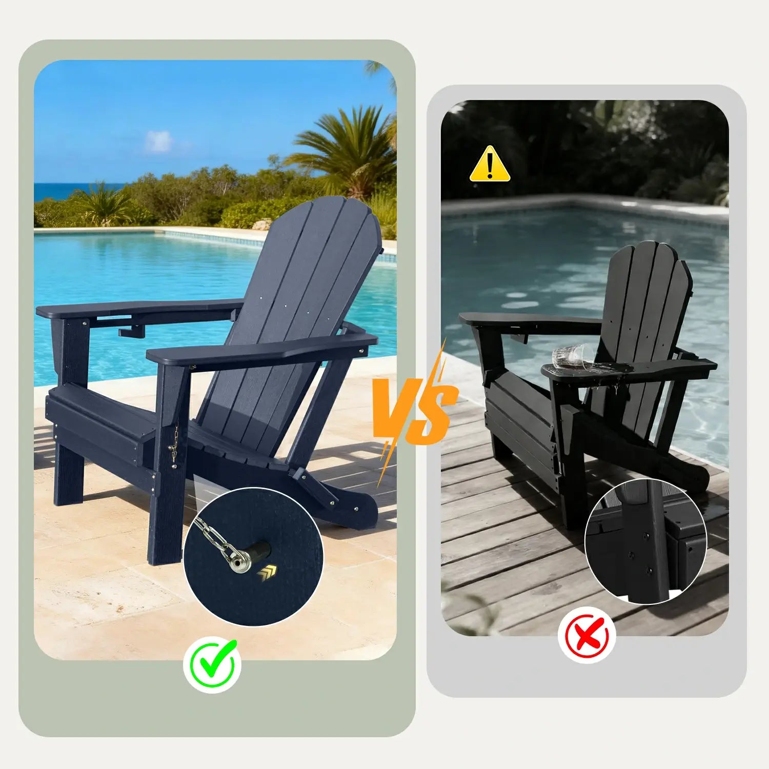 At domioutdoorliving, we prioritize your safety above all else. While many Adirondack Chair on the market can be shaky or prone to accidental collapsing. Ours is engineered with a high-strength bolt-locking design. This safety pin ensures maximum stability, preventing the chair from tipping or folding unexpectedly during use. Choose domi for a heavy-duty, all-weather seating solution that offers superior stability on your patio, deck, or poolside, giving you true peace of mind.