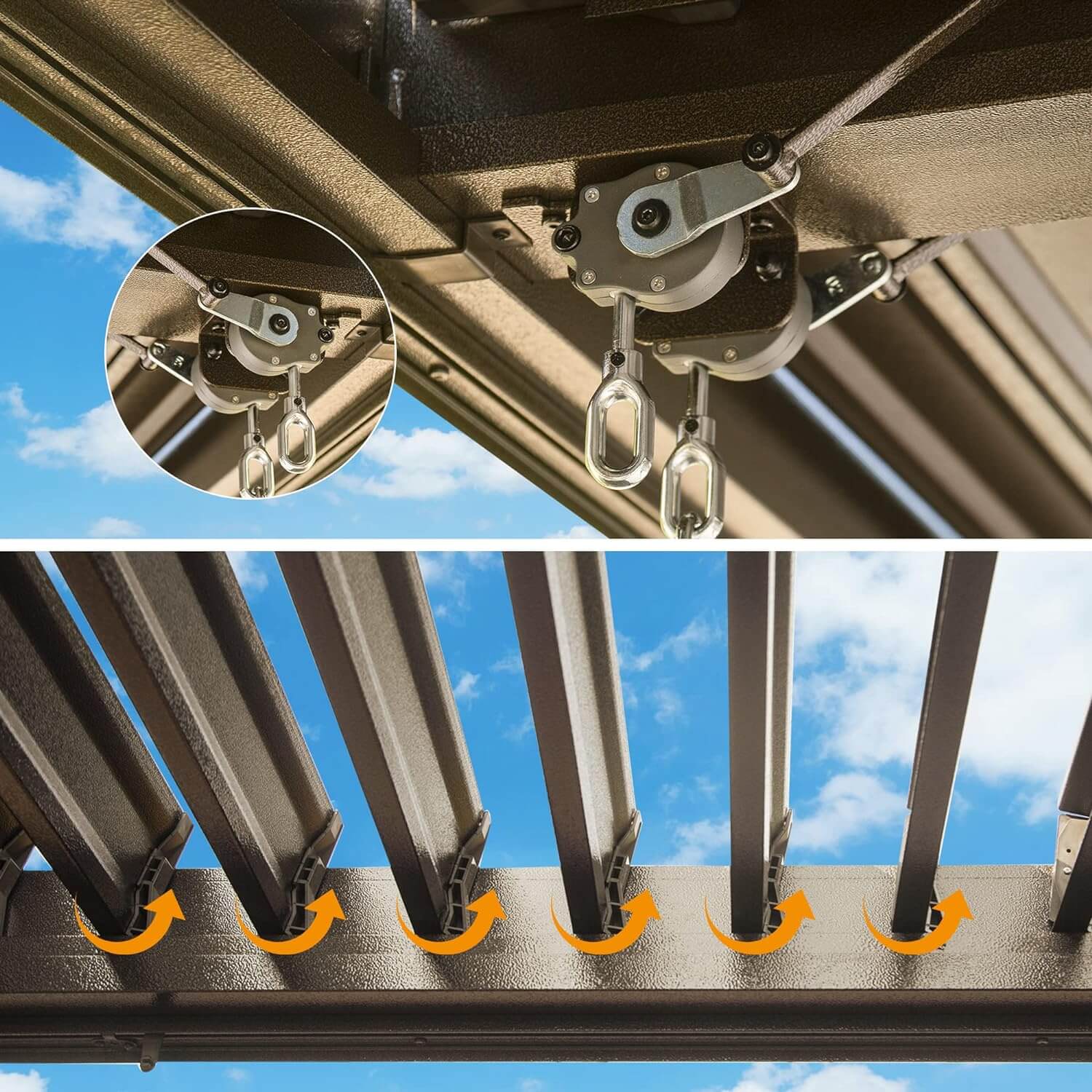 Experience the best of both worlds with a louvered roof that allows you to control the amount of sunlight and shade. Whether you desire a sun-drenched space for relaxation or a cool retreat on hot summer days, this pergola offers adjustable galvanized steel roofing to effortlessly meet your preferences.
