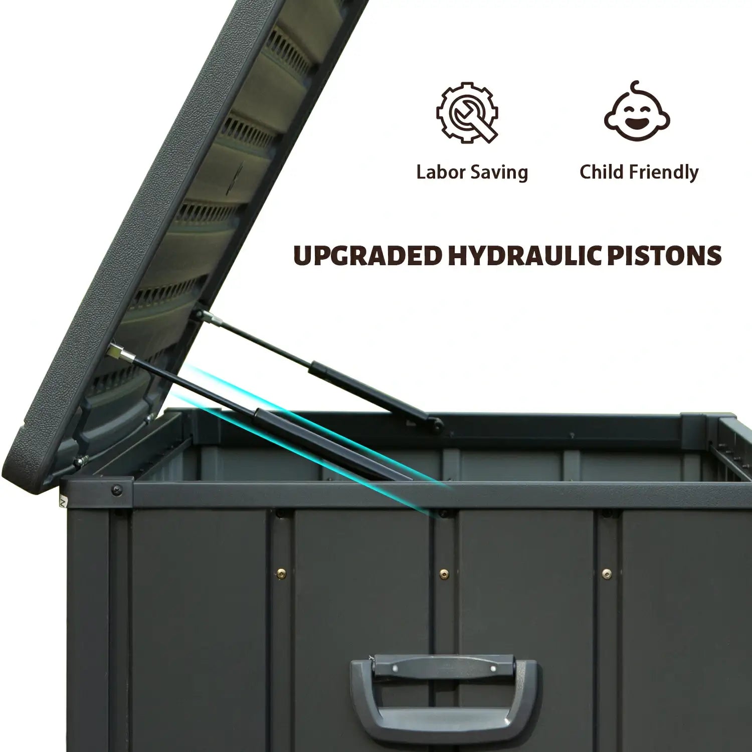 Discover the ultimate convenience with Domi premium storage box, equipped with advanced hydraulic pistons. These pistons offer smooth and controlled lid opening, allowing you to store and retrieve items with a gentle touch.No more struggling with heavy lids or loud slams—this box makes outdoor storage effortless.
