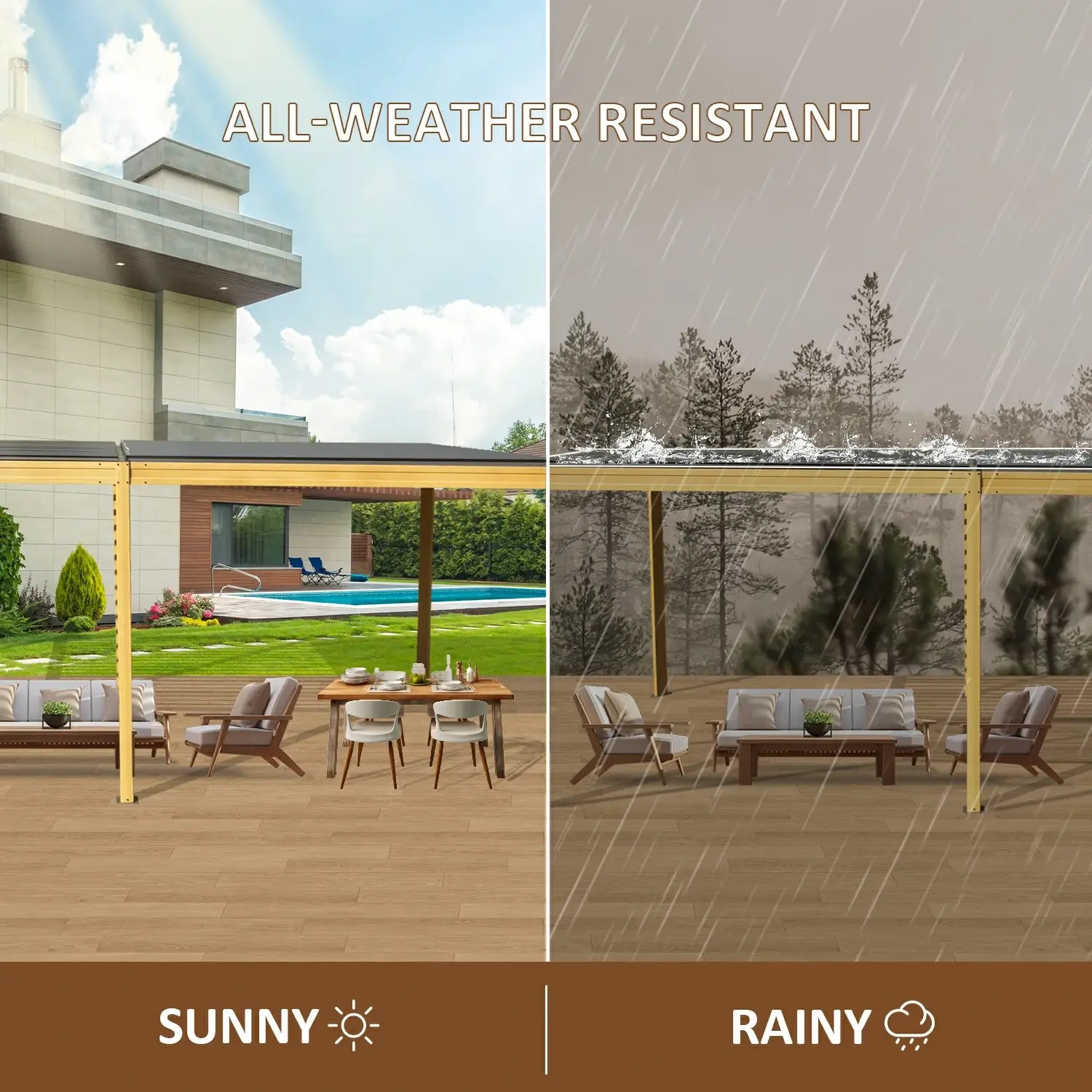 Designed for durability, our pergola has a rust-resistant coating on all steel components, guaranteeing your investment is protected against corrosion and wear. Enjoy your outdoor space regardless of the weather, knowing your pergola is built to last.