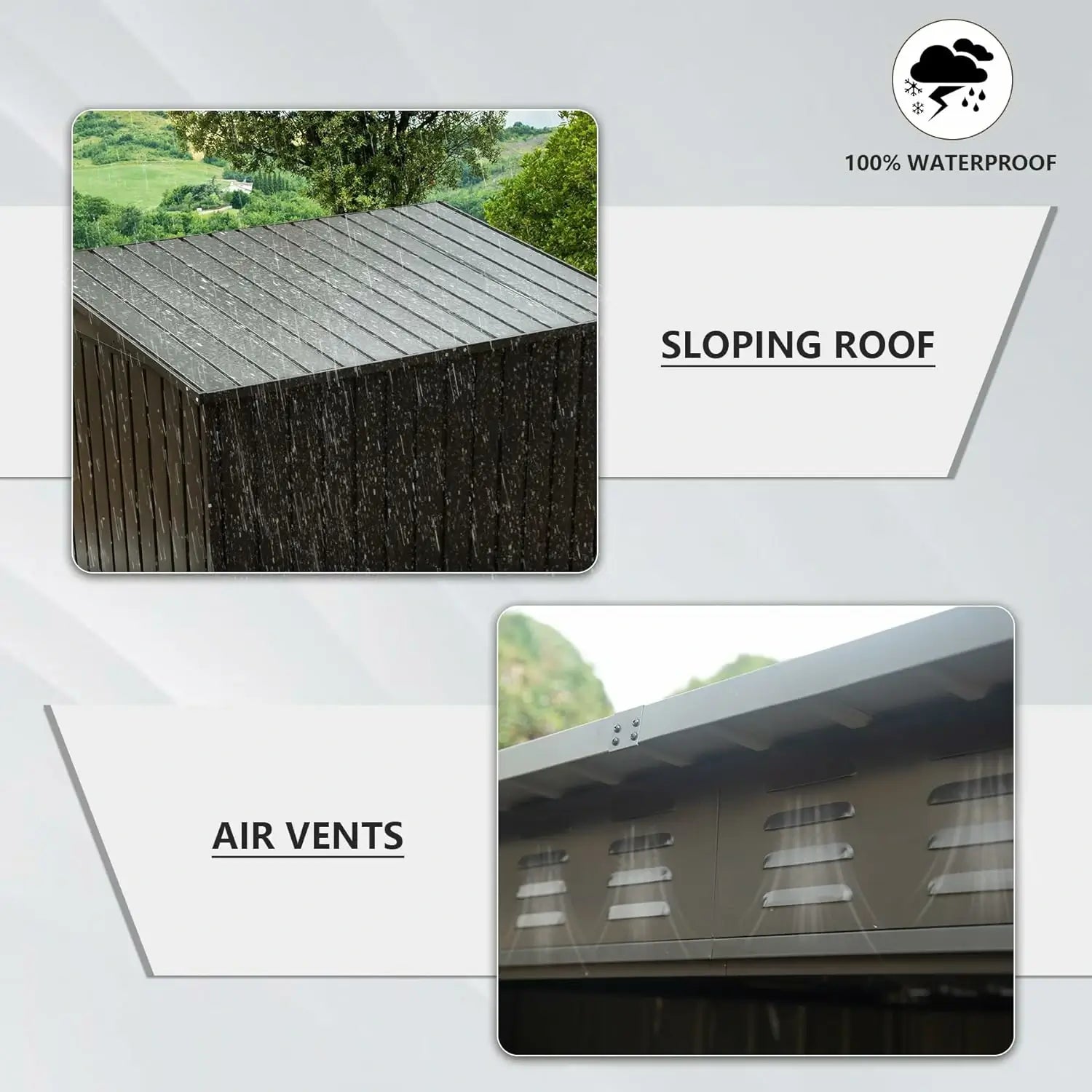 Our sloping roof design maximizes storage capacity, ensuring you have enough room to keep everything organized and easily accessible. Built-in ventilation holes prevent moisture buildup, keeping your items in perfect condition. No more worries about mold or mildew.