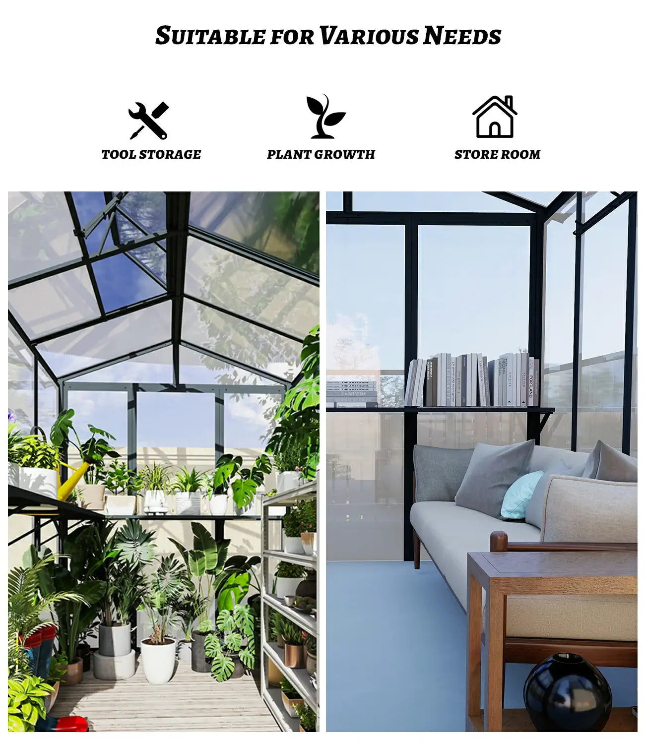 Experience superior gardening with the Domi Outdoor Living greenhouse. Featuring a high-quality thickened aluminum frame and advanced polycarbonate panels, Domi's greenhouses are built for durability and optimal plant growth. Perfect for gardening enthusiasts, Domi designs ensure excellent ventilation and temperature control, extending your growing season. Discover the best small greenhouse or large greenhouse for your backyard, ideal for vegetable gardening, flower growing, and protecting delicate plants from harsh weather. Invest in a Domi greenhouse for a thriving garden all year.