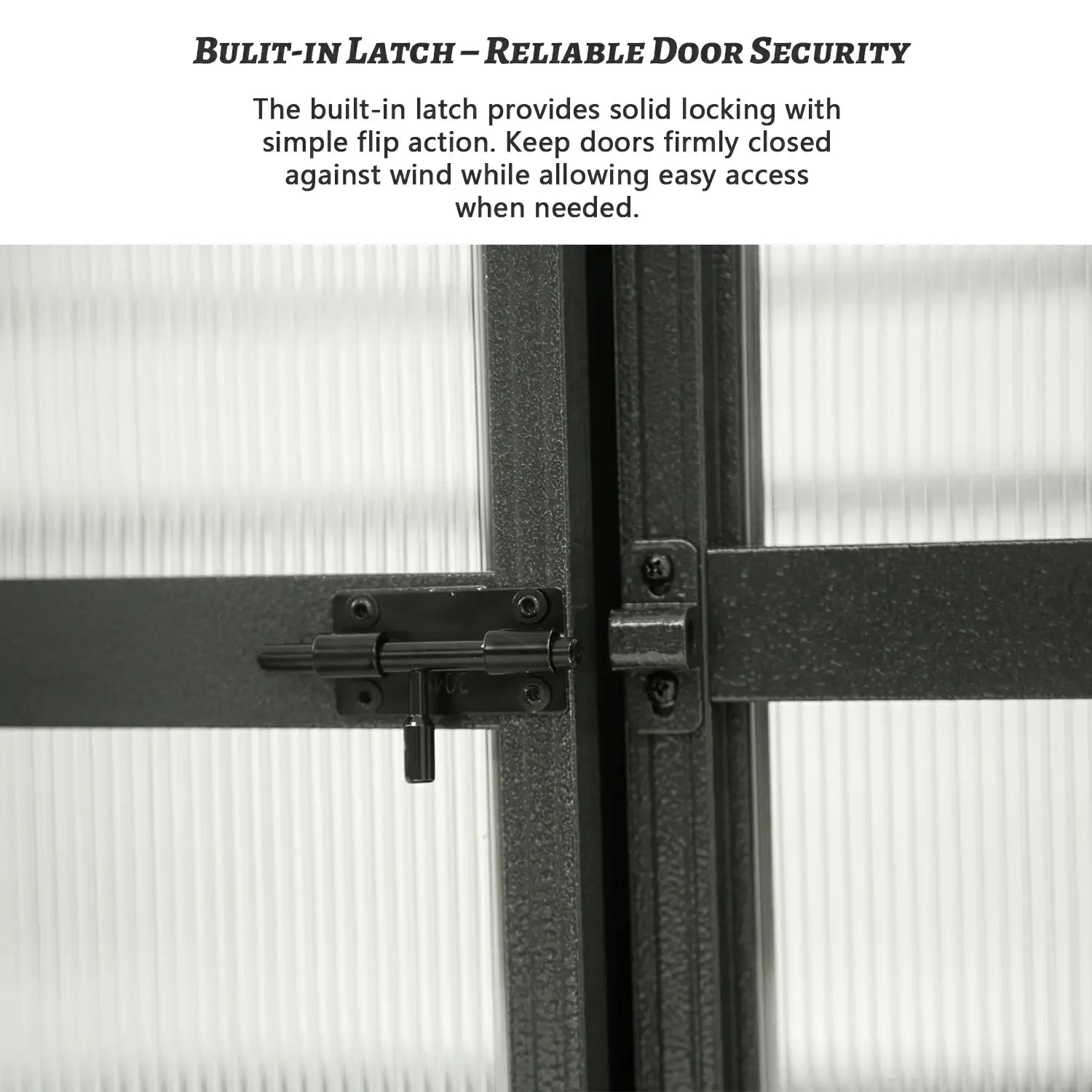 Ensure the safety of your Domi Outdoor Living greenhouse with its built-in latch, offering reliable door security. This sturdy locking mechanism provides a solid lock with a simple flip action, keeping doors firmly closed against strong winds and unwanted access. Protect your precious plants and gardening equipment from harsh weather and intruders, while still allowing easy access when you need it. Enjoy peace of mind knowing your greenhouse is secure and your growing environment is protected. Choose Domi for durable, safe, and high-quality greenhouse solutions.