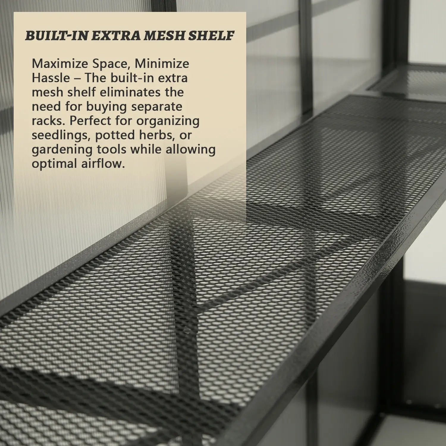 Domi Outdoor Living greenhouse delivers a superior growing environment on all fronts, combining robust construction with intelligent features for year-round plant cultivation. Its extra mesh shelf, a smart storage solution, provides ample space for rooting cuttings, herbs and spices, fertilizers, and all your gardening tools, truly maximizing usable space. The open mesh also ensures consistent airflow, critical for healthy plants and disease prevention. With Domi's commitment to quality and user-friendly design, this greenhouse is an invaluable asset for every passionate gardener.
