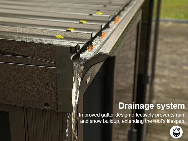 The galvanized steel roof provides superior strength and durability, ensuring that your gazebo will withstand even the harshest weather conditions. The design of the front-end roof gutter effectively channels rainwater out from both sides.